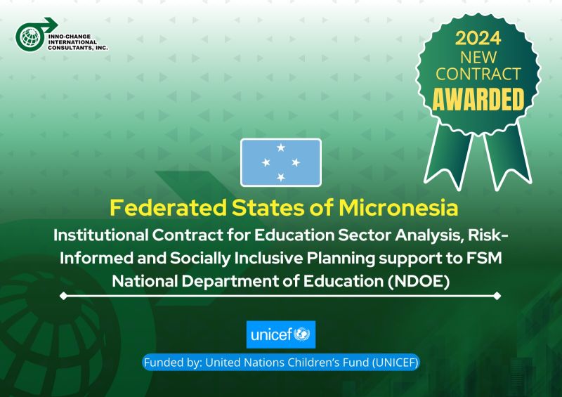 We are pleased to inform you that Inno-Change International Consultant will be conducting an Education Sector Analysis, Risk-Informed Planning, and Socially Inclusive Planning to support the development of an Education Sector Plan for the National Department of Education (FSM). The United Nations Children’s Fund UNICEF provides funding for this assignment.