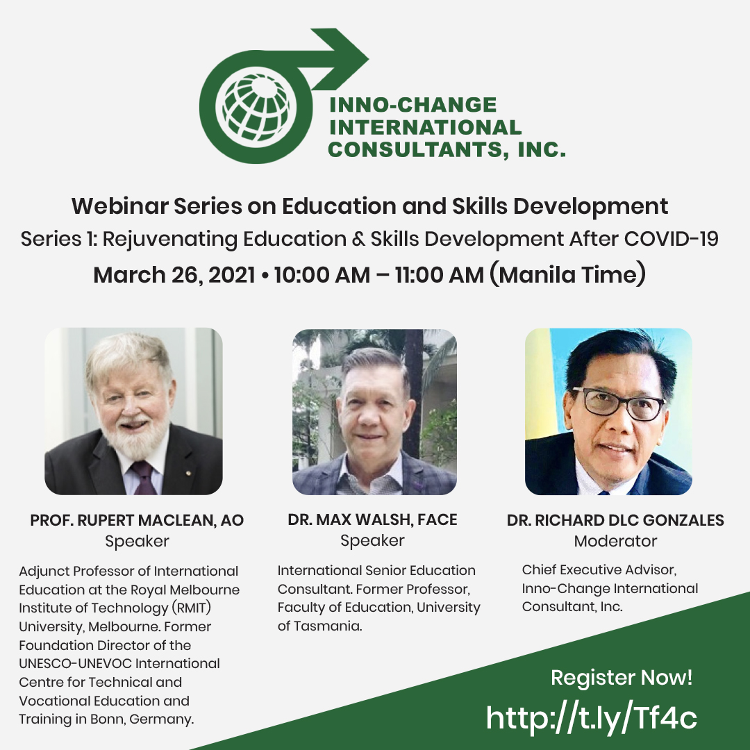 Dr. Richard DLC Gonzales is the Inno-Change International Consultants, Inc. Concurrently, a Staff Consultant at the Asian Development Bank and a Fellow of the Southeast Asian Ministers of Education Organization (SEAMEO).
